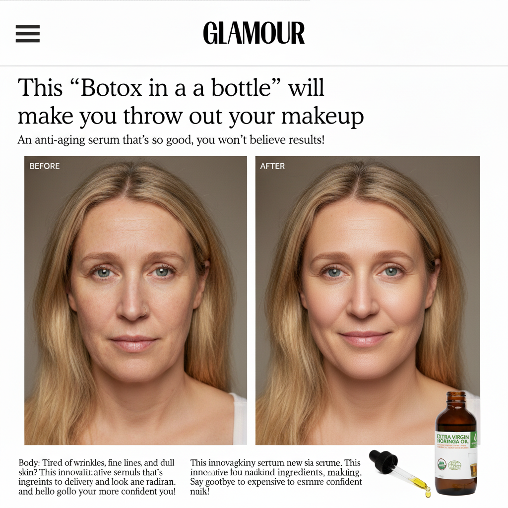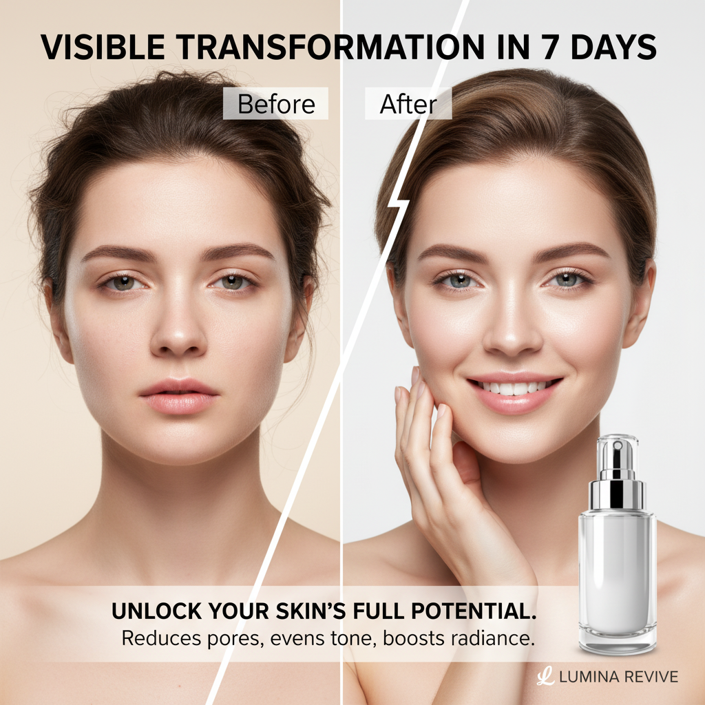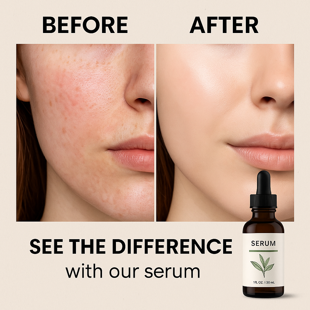 Create a female transformation-style ad using the product image. Headline: show contrast (before → after). Subtext: highlight the clear difference with product use. Design: split-screen layout or comparison overlay.